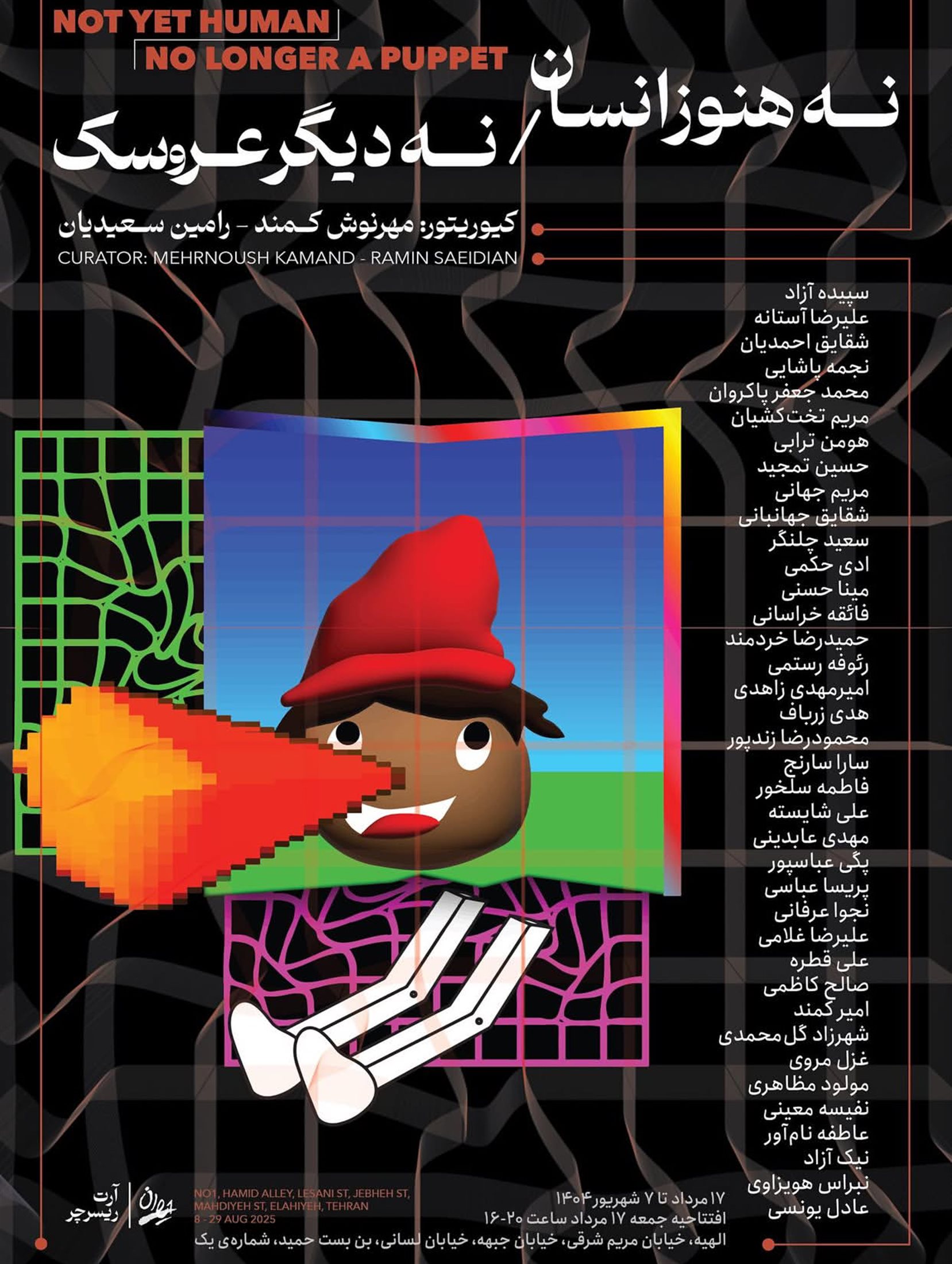 آرتیستها: سپیده آزاد / علیرضا آستانه / شقایق احمدیان / نجمه پاشایی / محمد جعفر پاکروان / مریم تختکشیان / هومن ترابی/ حسین تمجید / مریم جهانی / شقایق جهانبانی / سعید چلنگر / ادی حکمی / مینا حسنی / فائقه خراسانی / حمیدرضا خردمند / رئوفه رستمی / امیرمهدی زاهدی / هدی زرباف / محمودرضا زندپور / سارنج / فاطمه سلخور / علی شایسته / مهدی عابدینی / پگی عباسپور / پریسا عباسی / نجوا عرفانی / علیرضا غلامی/ علی قطره / صالح کاظمی/ امیر کمند/ شهرزاد گلمحمدی/ غزل مروی/ مولود مظاهری/ نفیسه معینی/ عاطفه نامآور/ نیک آزاد / نبراس هویزاوی / عادل یونسی